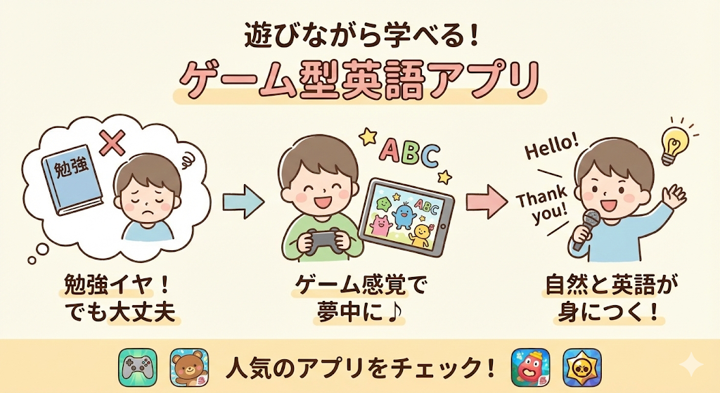 「勉強」という言葉だけで拒否反応が出るお子さん、いませんか?そんな子でも、ゲーム感覚で楽しめる英語アプリなら話は別!遊びの延長で自然と英語が身につくなんて、親としてはありがたい限りです。ここでは、実際に人気のある“ゲーム型”英語アプリをご紹介します。