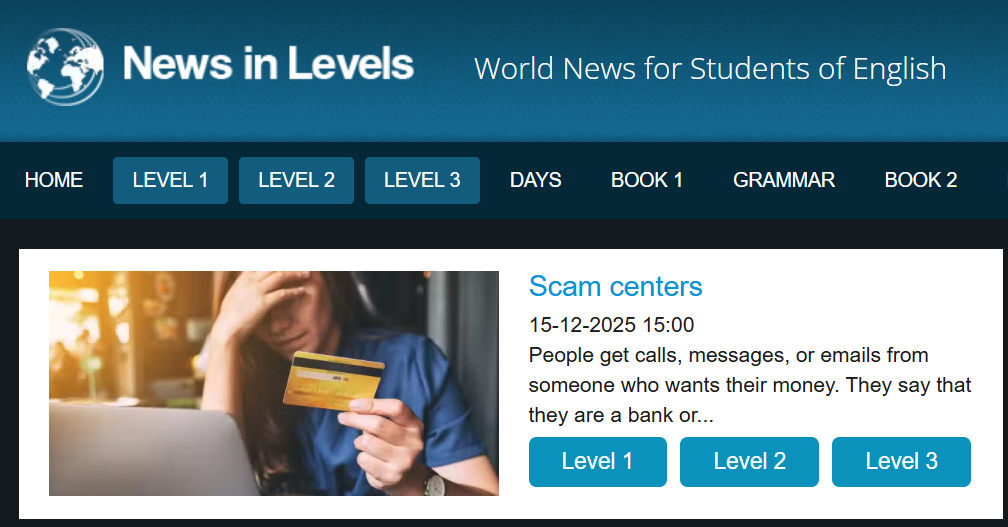 News in Levelsは、同じニュース内容を複数の難易度で読める英語多読サイト無料です。文章は短めで、1記事あたりのボリュームも控えめなので、数分あれば読み切れます。「今日はレベル1」「慣れてきたらレベル2」といった使い分けができ、無理なく英語量を増やせるのが魅力です。