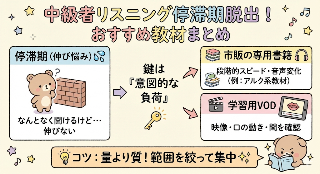 リスニング停滞期を抜けるための中級者向け教材