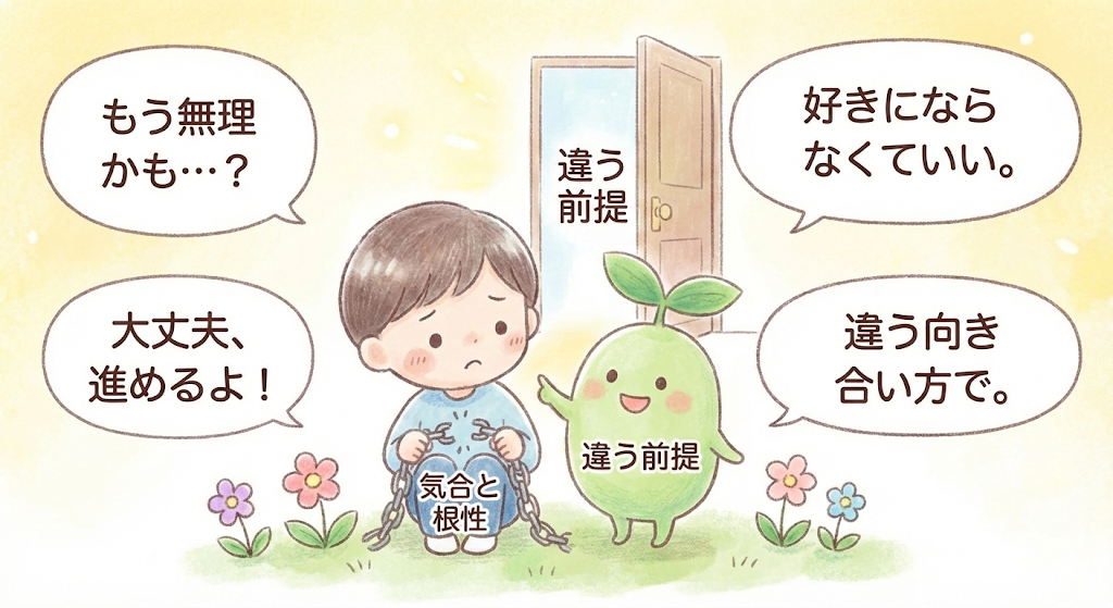 多くの学習法は「やる気がある人」を前提に作られています。しかし、英語が嫌いすぎる状態では、その前提自体が合っていません。続いた人たちは、「嫌いなままでいい」「やる気がなくてもいい」という前提からスタートしています。