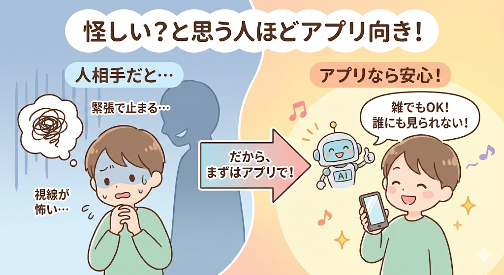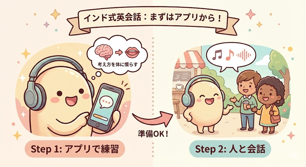 実はその慎重さこそが、英会話アプリと相性のいいポイントでもあります。いきなり人と話すよりも、まずは一人で練習できる環境を選ぶことで、無理なくインド式の考え方を取り入れることができます。