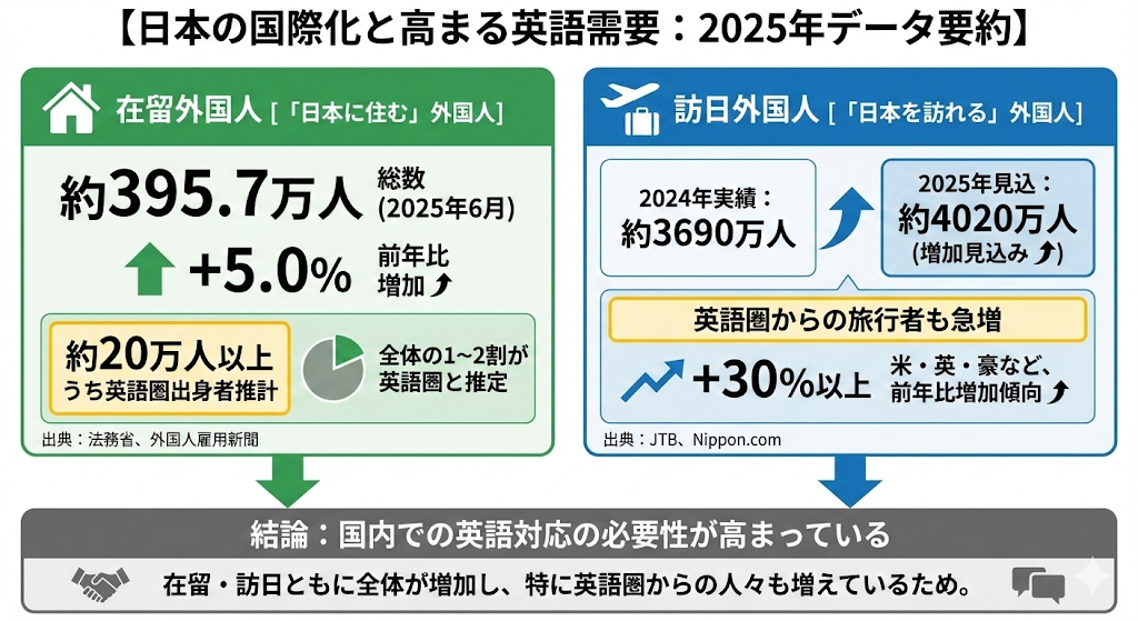 「英語を使う仕事じゃないはずだったのに、急に聞かれてしまった」そんな経験、意外と多いものです。都市部だけでなく地方でも、インバウンドや在留外国人の増加で、接客の現場は確実に変わっています。しかも、事前に心の準備ができているわけではなく、レジ中や注文対応の真っ最中に英語で話しかけられることも珍しくありません。この“突然さ”が、英語への苦手意識を強くしてしまう原因になりがちです。