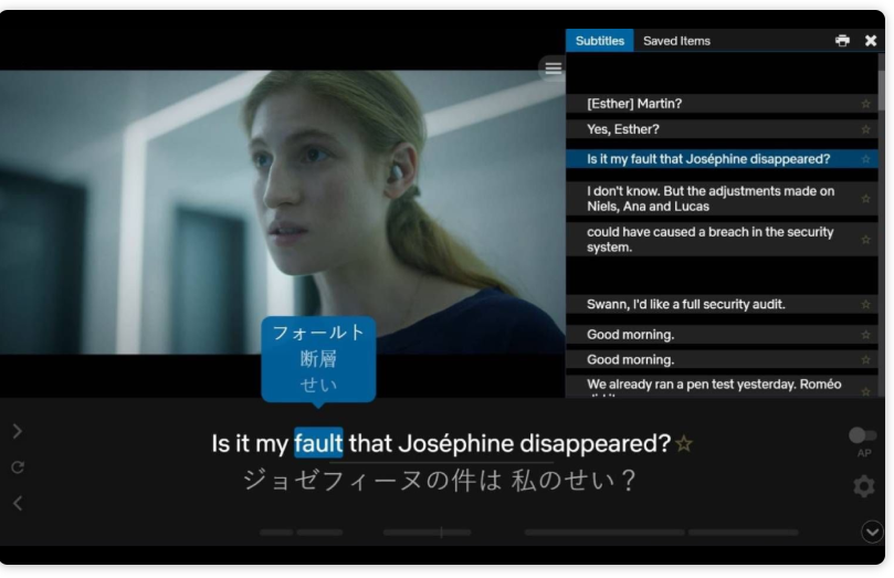 特にドラマや映画は会話スピードが速く、途中で置いていかれがちです。でも、日英同時字幕があれば「今なんて言った?」と焦らずに済みます。完璧に聞き取れなくても内容が追えることで、英語への苦手意識が和らぎます。