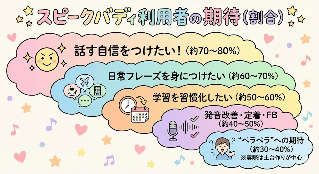 これらが少しでも当てはまるなら、スピークバディはすでに役割を果たし始めています。逆に、まったく変化を感じない場合は、使い方を見直すか、別の学習方法に切り替える判断もアリです。