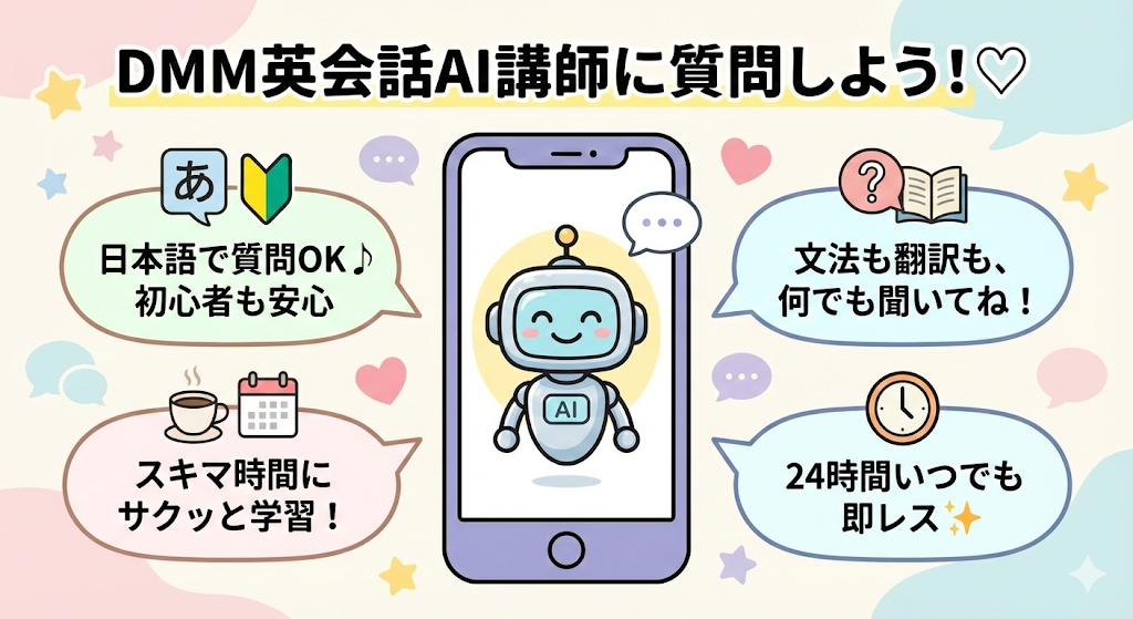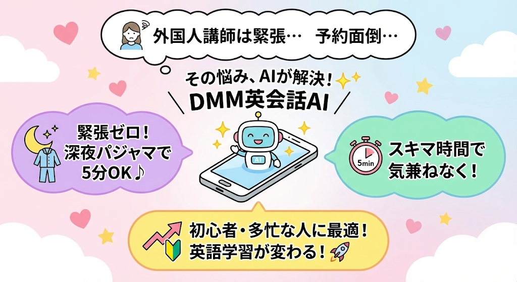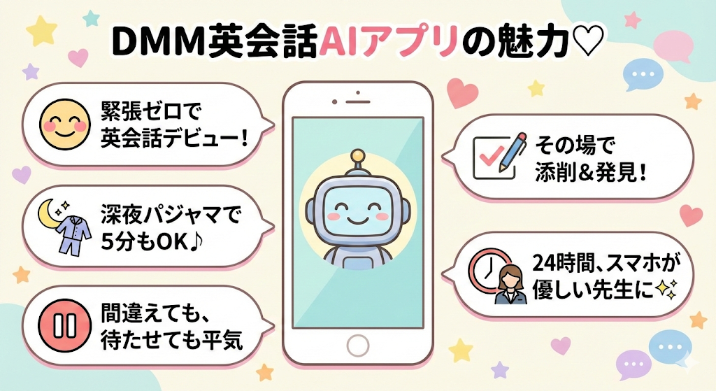 DMM英会話のAIアプリ、実は「英会話デビュー」や「こっそり上達」にぴったりなんです!✨