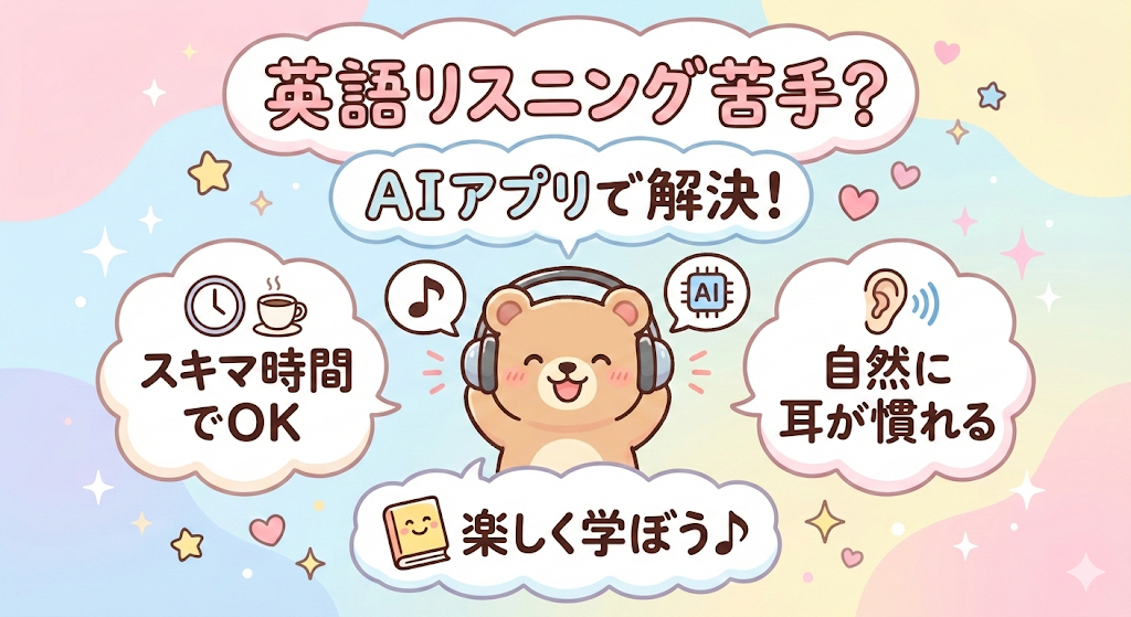 「英語のリスニングが苦手…」「何度聞いても聞き取れない…」そんな悩み、ありませんか?実は、AI英会話アプリを使うと、自然と耳が英語に慣れてスムーズに聞き取れるようになります。 しかも、スキマ時間にサクッとできるから忙しい毎日でも続けやすいんで...